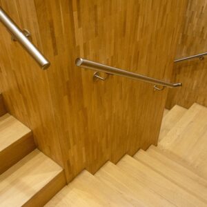 Gradas con descanso: Combinan diseño y funcionalidad en espacios con cambios de dirección.